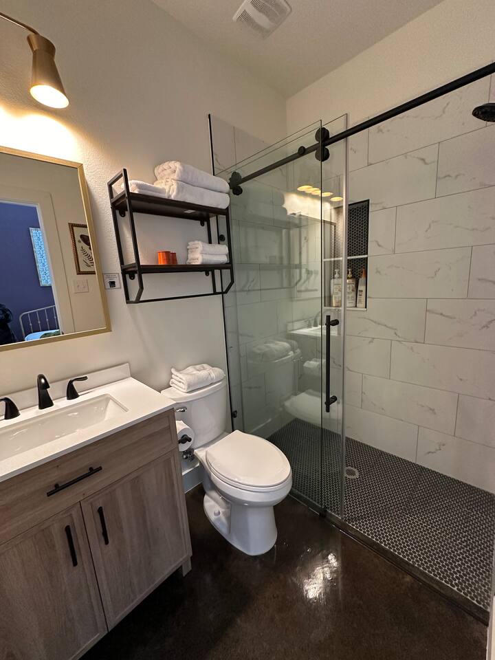 800 sq. ft of newly built comfort and luxury. 2 bedrooms each have their own bathroom. Pull-out queen size sofa boasts a brand new, luxury matress. Private backyard shaded by mature trees. Casita is located in the large backyard of our main residence, so we may even cross paths! Don't worry, we do our best to honor all guests' privacy and quiet - we're happy to engage, but we'll let you take the lead.